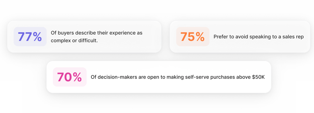 Buyers are forced to do all the work themselves, moving through research and qualifying steps solo, with 70%+ of the journey complete before sales even get involved.