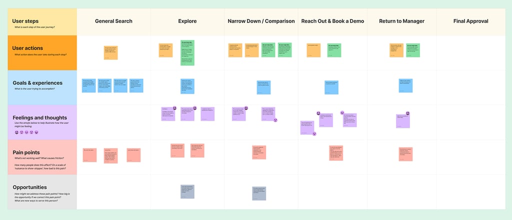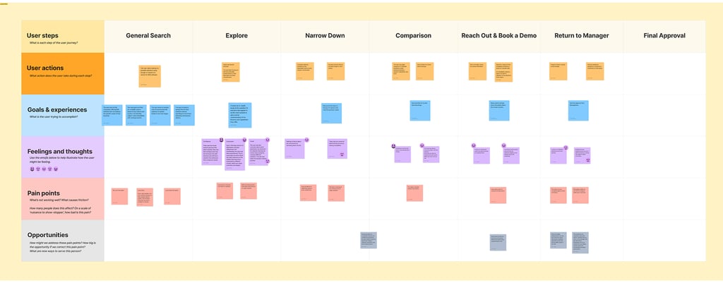 Conducted interviews and facilitated discovery workshops to identify key friction points in SaaS sales. Built and refined user journey maps to guide experience design.