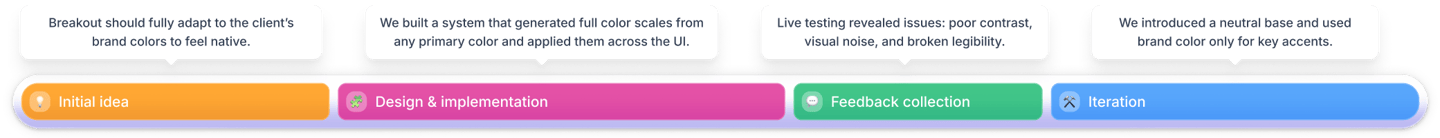 The interface became stable, clean, and professional on any website - regardless of how strong (or weak) the client’s brand palette is.
