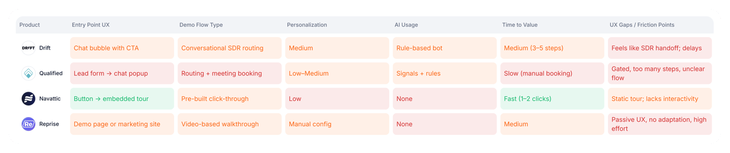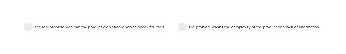 I conducted competitive research. Several solutions were improving onboarding, documentation, and chat features. But no one was addressing the critical “first-minute” problem—the moment when users are warm enough to listen but not yet convinced.