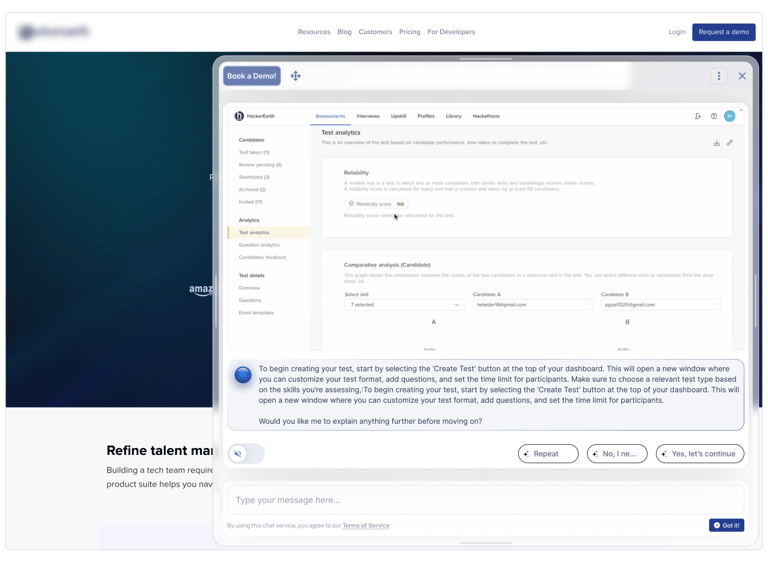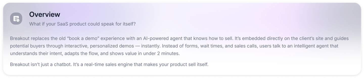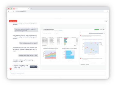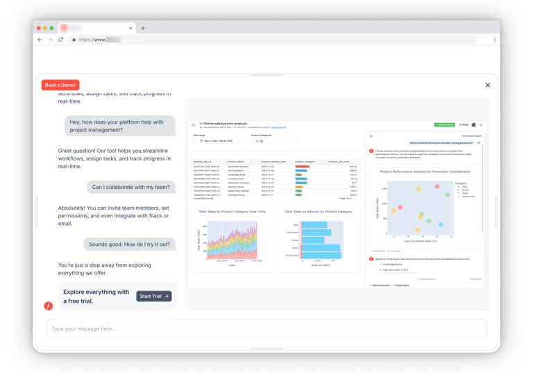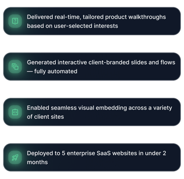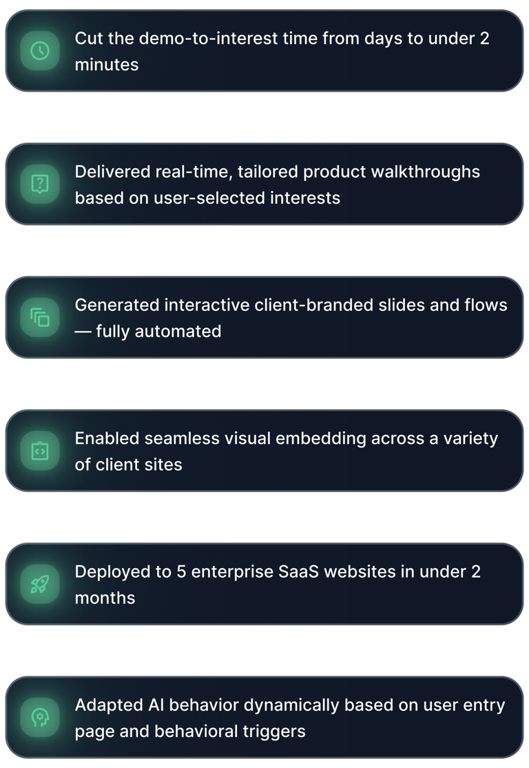 An AI-powered assistant that turns your website into a live, self-guided product demo — without forms, friction, or sales teams.