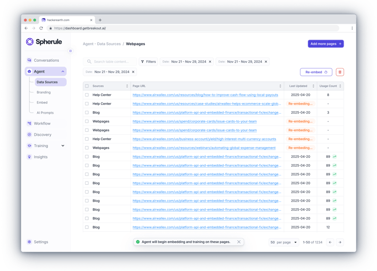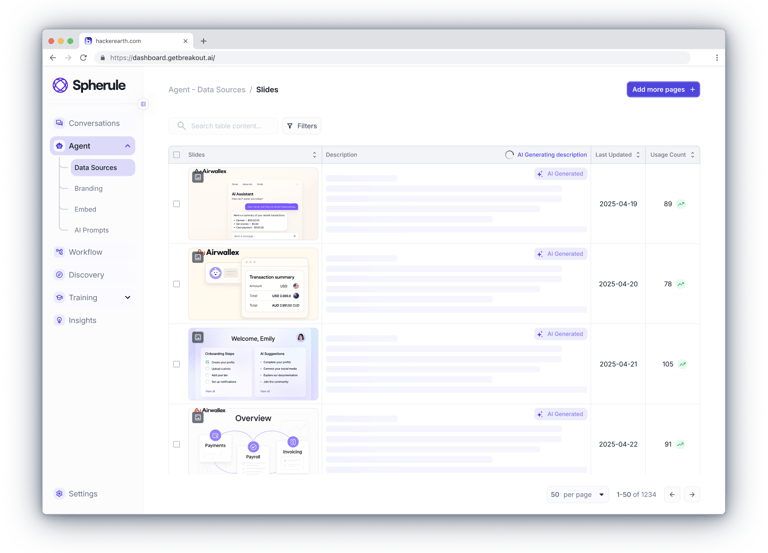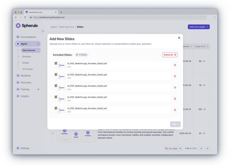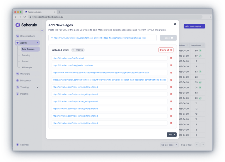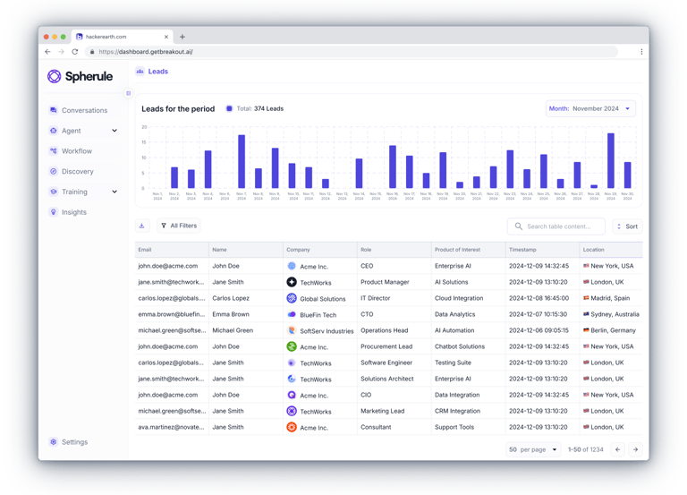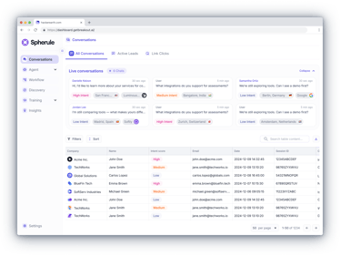 The admin dashboard brings together everything a client needs — from real-time chat monitoring and assistant customization to uploading knowledge content and managing leads.Clients can join ongoing conversations, review full histories, fine-tune the assistant’s behavior and tone of voice, and provide it with materials like documents, links, slides, and videos.All data - from user profiles to lead insights — is accessible in one place.