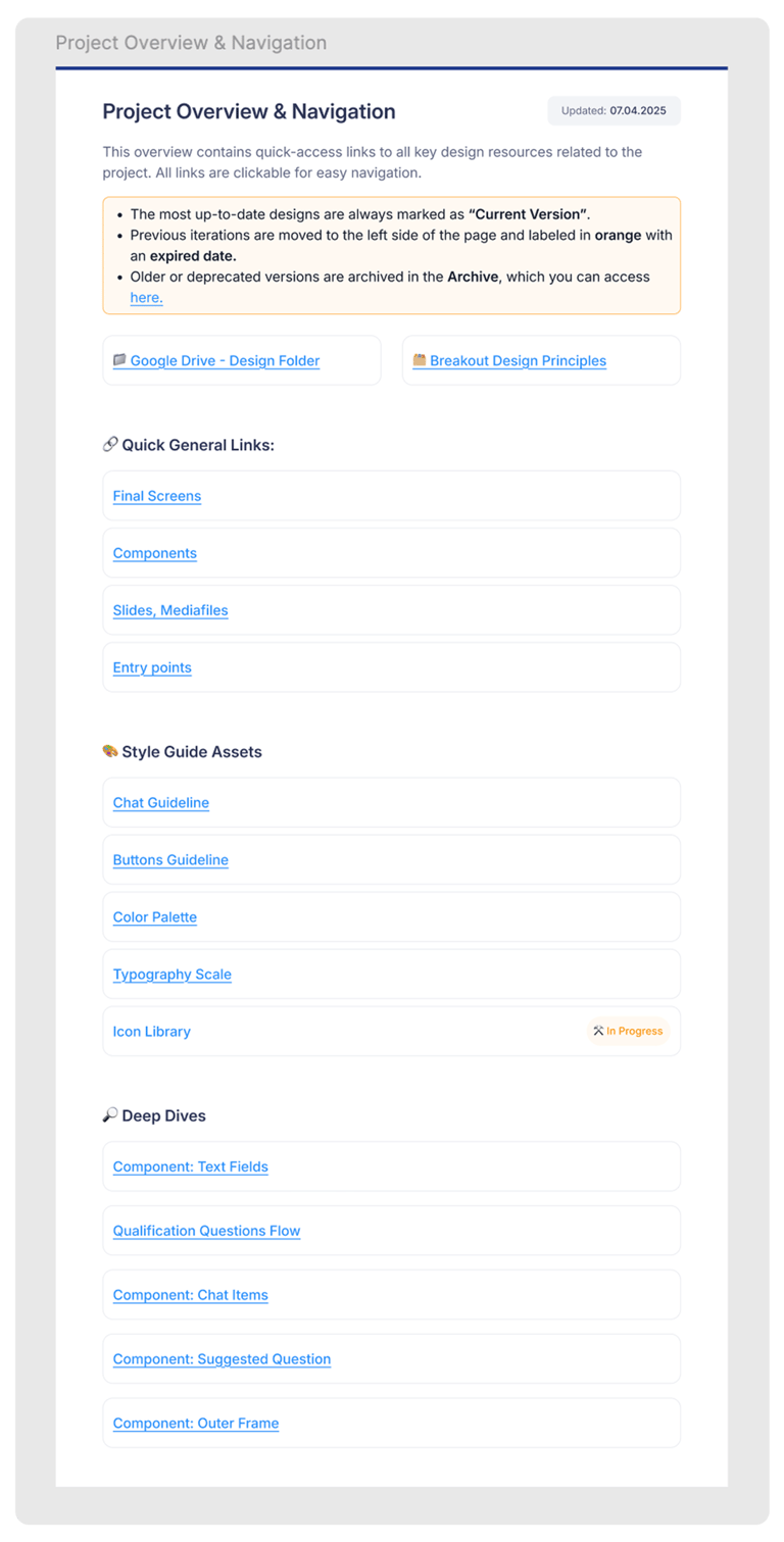 To ensure stability and scalability,we built a universal design system — with a clean structure, adaptive components,and a well-organized Figma file: with an index, quick access, Guidelines and clearly divided sections for the team.