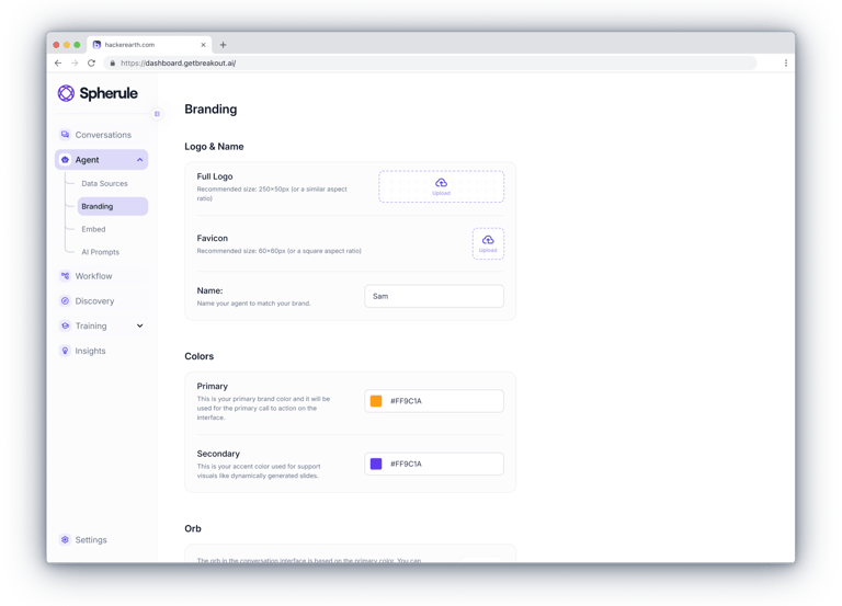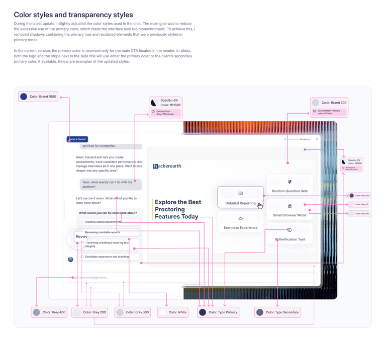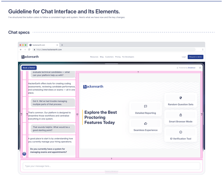 Since we had implemented a backend logic for auto-branding, the chat interface was designed to dynamically adapt based on the client’s primary color.