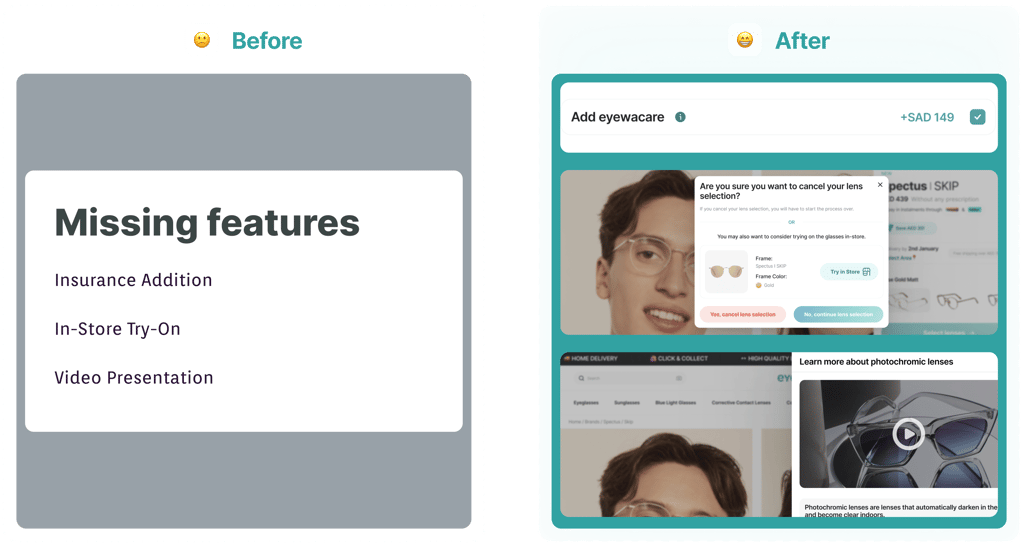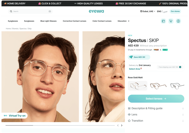 Eyewa, a leading online eyewear retailer in the Middle East, faced a significant challenge. Despite offering a wide range of optical products, the conversion rate on the website was unsatisfactorily low. Users often found the purchasing process confusing and cumbersome.