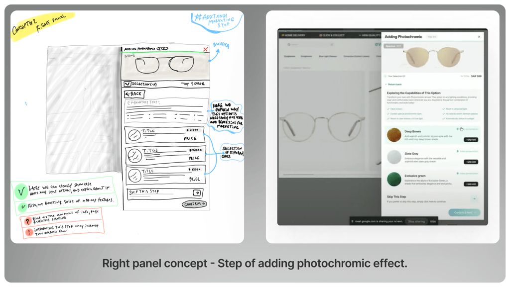 After several iterations and thorough testing, we held discussions with our team to assess the feedback and performance of each concept. Based on these insights, we decided to pivot towards a different approach. Our focus shifted to the right panel design, which better aligned with both user needs and business objectives.