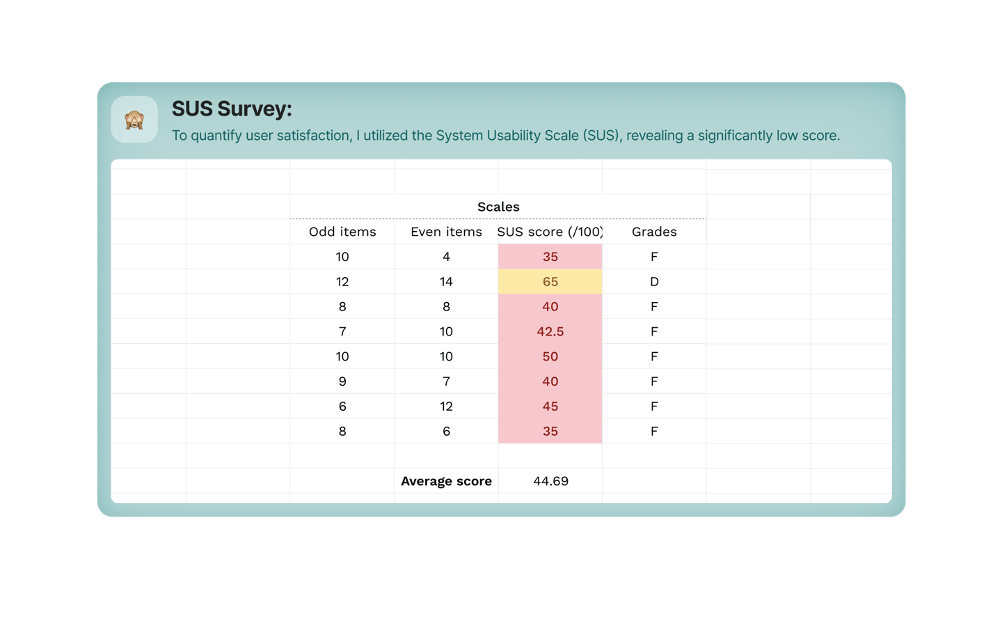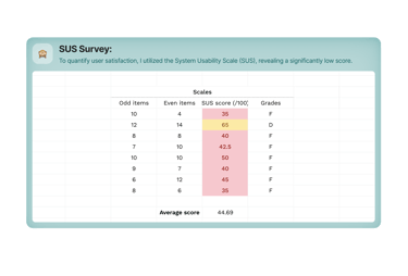 To confirm the effectiveness of our new design, we conducted a System Usability Scale (SUS) survey. The average SUS score significantly improved from 44.69 to 83.88, indicating much higher user satisfaction and usability. This validation demonstrates that our new design is successful and is already in development.